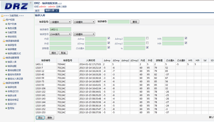 - 軸承組配管理:管理軸承組配的整個(gè)過程,包括軸承入庫(kù),軸承組配,軸承出庫(kù)等